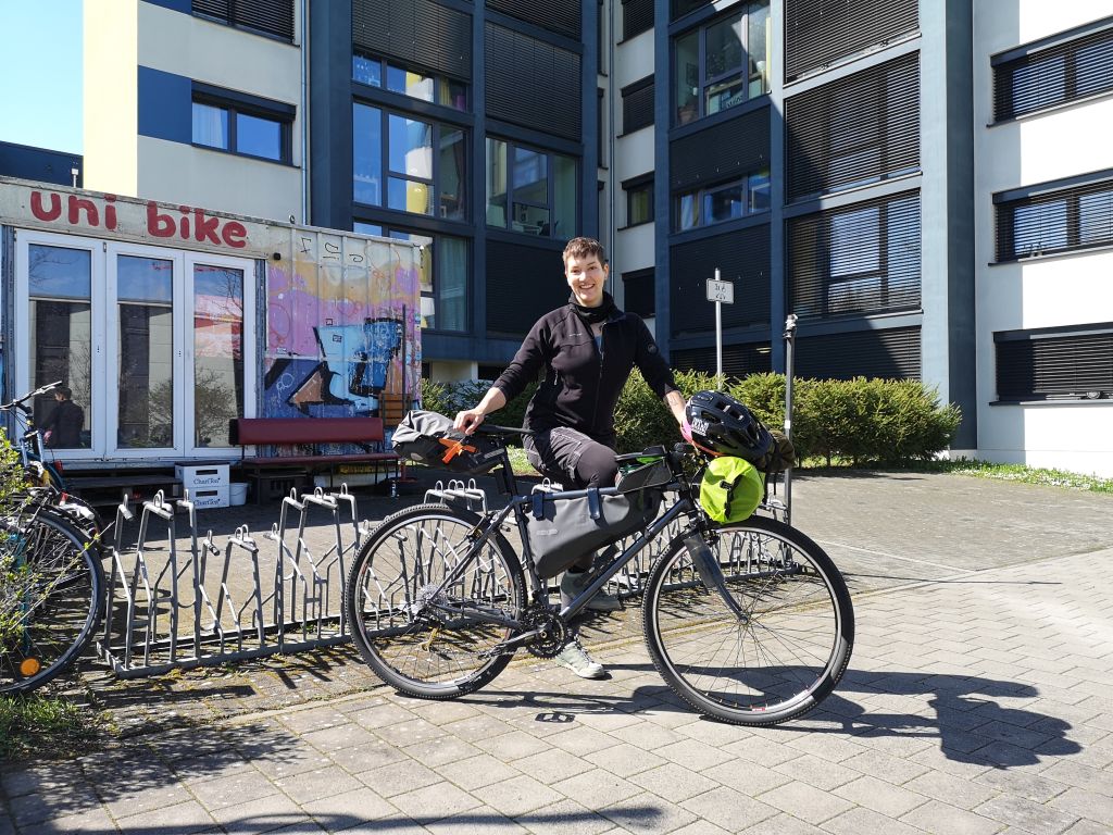 Wer heute auf sich aufmerksam machen will, muss sich schon etwas Besonderes einfallen lassen: Eva Krah (27 Jahre), Zweirad-Mechatronikerin, ist gerade mit ihrem Meisterstück, einem selbstgebauten Fahrrad, unterwegs. Am 19. April startete sie ihre Tour in Kopenhagen und plant, in der zweiten Mai-Woche in Mainz anzukommen. Insgesamt wären es dann rund 1.700 Kilometer, die die Mainzerin zurückgelegt hat.