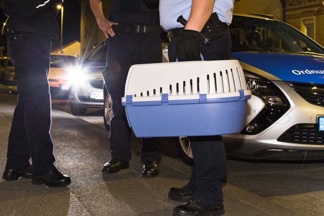Kurz nach 23 Uhr ein ungewöhnlicher Anruf: Eine Katze ist in eine fremde Wohnung gelaufen und terrorisiert eine Mutter und deren Kind. „Ich weiß mir nicht mehr zu helfen“, sagt die Frau zur Begrüßung und zeigt auf ihre zerkratzten Beine. Auf dem Fernsehtisch zwischen Videorecorder und PlayStation sitzt eine schwarze Katze, drum herum jede Menge Katzenpisse, von der ein beißender Gestank ausströmt. Auf dem Bett kauert der Sohn und beobachtet das Tier. „Die gehört hier niemandem im Haus“, sagt sie. „Das wüsste ich.“ Günter geht vorsichtig zu der Katze und streichelt sie beruhigend. Dann trägt er sie nach draußen. Im Flur aber entwischt das Tier und rennt in den Keller, wo es regungslos sitzen bleibt. „Die Kollegen bringen jetzt eine Katzenbox“, sagt Olaf nach einem Telefonat, „dann können wir sie ins Tierheim bringen.“ Während Olaf die Katze bewacht, steht Günter draußen und raucht. „Früher hatte ich nichts mit Gesetzen zu tun“, sagt er. Er habe Bäcker gelernt, dann aber gewechselt. Olaf dagegen kommt – wie einige beim Ordnungsamt – von der Bundeswehr. „Man erlebt schon viele traurige und unschöne Sachen“, meint Günter. In der Nacht seien es vor allem Ruhestörungen oder psychisch Kranke, die sie betreuen und in die Klink bringen müssten. „Da muss man viel Fingerspitzengefühl haben.“ Tiere sind eher die Ausnahme. Einige Fälle beschäftigen ihn heute noch. Etwa eine verwahrloste alte Dame, die er in seinen ersten Wochen erlebte. Der Müll in ihrer Wohnung stand so hoch, dass er kaum durch die Türe passte, sagt Günter. „Auch heute denke ich noch, was aus ihr geworden ist.“ Er zieht an seiner Zigarette und erzählt weiter von verwesten Leichen, Verrückten oder zerrütteten Familien. „Man darf diese Geschichten nicht mit nach Hause nehmen.“ Nach der Arbeit müsse man abschalten. „Sonst macht man den Job nicht lange.“