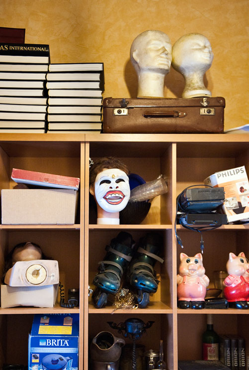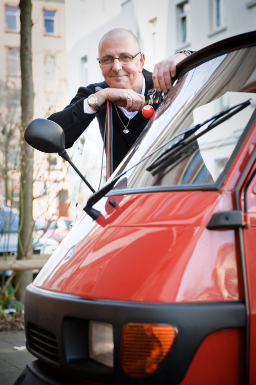 Der Wecker in der Nackstraße klingelt morgens zwischen fünf und acht Uhr. Wolf steht auf und liest Zeitung. Danach startet er den Computer. Der Schreibtisch steht in der Ecke des kleinen, verkruschten Wohnzimmers. Im Regal präsentieren sich altbekannte und kuriose Gegenstände, Fastnachtsorden hängen an den Wänden – das Zimmer ist zugleich Laden und Büro. Später macht er sich auf den Weg und entrümpelt kostenlos Wohnungen – mit diesem Unternehmenszweck ist er offiziell angemeldet. Ein Teil des Hausrats verkauft sich über Internetauktionen oder soziale Netzwerke. „Die Menge macht’s“, erklärt der 56-jährige „Jungunternehmer“ sein Konzept. Der Auftraggeber trägt lediglich die Kosten des Kübels, in dem anschließend innerhalb weniger Stunden der unverkäufliche Rest landet. Dabei „ochst“ und schwitzt Wolf und ist in seinem Element. Der Mann steckt voller positiver Energie und Tatendrang. Die selbstgedrehte Zigarette glimmt zwischen seinen Fingern, während er von der Lust am Entrümpeln, dem Planen und Sondieren erzählt – aber auch von Tod, Altenheimen und verwaisten Wohnungen. Die meisten Bewohner kannte er, seine Tätigkeit verrichtet er emotionslos und zielstrebig. Das ist besser so.