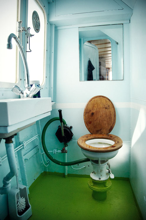 „Nette“ hingegen stammt aus den 30er Jahren, ist schmal und lang und bietet genügend Platz für eine Person, die sich entschieden hat, dauerhaft auf ihr zu leben. Der Esstisch lässt sich im Handumdrehen zu einem Bett verwandeln, während in der Küche ein Gasherd, fließendes Wasser und ein Kühlschrank vorhanden sind. Auch ein Badezimmer gibt es, in dem fehlt allerdings die Dusche, weil sie sich an Deck befindet. Also muss Leo zu jeder Jahreszeit und Wetterlage im Freien duschen. Im Winter kommt es nicht selten vor, dass er nachts in seiner Jacke schläft, denn eine Heizung gibt es auch nicht.