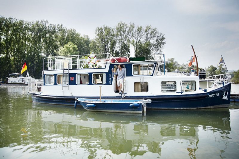 „Mein Hafen ist wie ein schwimmender Campingplatz mit den entsprechenden Campingplatzgestalten – nur in witzig.“ Bootbewohner Leo Hieronymi lebt seit knapp zwei Jahren auf seinem Boot „Nette“ im Budenheimer Hafen. Der 24-jährige Literaturstudent hat sich für das Wohnen auf dem Wasser entschieden, als sich seine Wohngemeinschaft in der Mainzer Neustadt aufgelöst hat: „Am Anfang fühlte es sich im Vorlesungssaal manchmal an, als wäre ich auf See und umgekehrt, aber man gewöhnt sich schnell an das Wackeln und nach drei Bier merkt man es sowieso nicht mehr.“ Das Boot hat Leos Vater vor zehn Jahren erworben. Der Gas- und Wasserinstallateur entschied sich für das Hobby, weil es familienfreundlicher ist. Bevor es das Boot gab, verbrachte er seine Freizeit mit dem Fliegen von Drachen und Ultraleicht-Flugzeugen, doch das nahm viel Zeit in Anspruch und er konnte niemanden mitnehmen. Inzwischen verbringt die Familie aus Oberursel ihre Ferien damit, Bootsfahrten nach Belgien, Frankreich oder Holland zu machen. Leo und sein jüngerer Bruder schließen sich den Eltern manchmal an. Einen Bootsführerschein hat der 24-Jährige noch nicht, doch das möchte er nachholen, sobald er etwas mehr Zeit hat. Gleichzeitig sagt er, dass er das Boot sehr vermissen wird, wenn er Mainz verlässt, um in einer größeren Stadt seinen Master zu machen. Doch sollte er in Hamburg oder Berlin landen, bestünde die Möglichkeit, sich vielleicht einen kleineren Ersatz an Elbe oder Spree anzuschaffen.