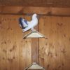 Was die Wenigsten wissen: Stadttauben sind eigentlich ausgewilderte Haustiere. Das erklärt nicht nur ihre große Verbreitung, sondern auch ihre Zutraulichkeit zu Menschen. Normalerweise können sie bis zu 25 Jahre alt werden, in der Stadt schaffen es die meisten auf maximal zwei bis drei. Neben Stadttauben landen auch Wild- und Zuchttauben im Tierheim. „Das sind unsere ‘Einwegtauben’“, sagt Dagmar und zeigt auf eine der hinteren Volieren. Hübsche weiße Vögel mit buschigen Schwänzen und schwarzen Knopfaugen. Sie kommen von einem Züchter, der sich aus gesundheitlichen Gründen nicht mehr um sie kümmern konnte. Tauben dieser Art werden fast ausschließlich gehalten, um sie bei Hochzeiten fliegen zu lassen. „Die werden nur auf Schönheit gezüchtet“, sagt Dagmar, „haben aber keinen Orientierungssinn. Wenn sie einmal losfliegen, sind sie verloren.“ Tauben sind keine Einzelgänger. Sie leben in Gruppen, manche sogar in lebenslangen monogamen Beziehungen (hier im Tierheim unter anderem ein schwules Pärchen sowie ein polyamores Dreiergespann). Alleine und ohne Orientierung fallen sie in der Natur schnell Raubtieren zum Opfer oder verhungern.