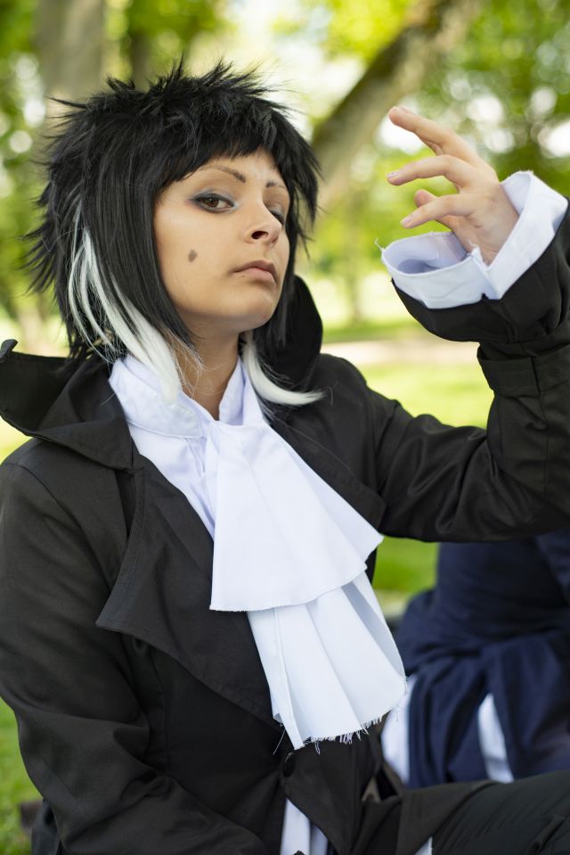 „Wir gehen jetzt mal shooten.“, melden sich kurz darauf die Minotaurin und die türkishaarige Elizabeth. Das Fotografieren gehört unabdingbar zum Cosplay. Schließlich muss die ganze Arbeit ja auch irgendwie konserviert werden. Dass die Fotografierende dann genauso extravagant aussieht wie das Model, ergibt ein ungewohntes Bild, doch ansonsten sind sie professionell zugange: präziser Posenwechsel, klare Kommandos, Wechsel der Perspektive mit vollem Körpereinsatz. Ein Mädel, das den Mafiosi Akutagawa verkörpert erklärt mir, dass Cosplay und die damit verbundenen Shootings für sie auch eine Stärkung des Selbstbewusstseins bedeutet. Insgesamt ist das Hobby wesentlich vielfältiger als Unwissende erst einmal denken mögen. Auslöser ist die Liebe zu Geschichten und deren Figuren, aber was dann folgt ist mit aufwendiger Recherche und handwerklichen Herausforderungen verbunden. Auf die Buchmesse im Oktober bereiten sich die meisten Cosplayer schon jetzt vor. In der Gruppe achtet man aufeinander und hilft sich. Zumindest die Mainzer Community scheint auch keinem großen Konkurrenzdruck erlegen zu sein (tatsächlich gibt es auch einen deutschen Verein, der bundesweite Meisterschaften mit strengen Kriterien veranstaltet). Durch Cosplay haben so einige ihre Zeichen- und Modellierfähigkeiten, ihr Selbstbewusstsein und ihren fotografischen Blick geschult. Ab und an fährt die Bimmelbahn vorbei. Nur Yogis tauchen heute keine auf.