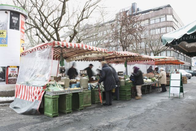 Eigentlich hat der Wochenmarkt noch gar nicht auf, aber die frischen Brötchen gibt es schon ab sieben Uhr. Jeden Donnerstag ist Markt am Frauenlobplatz und die Neustadt verwandelt sich in ein kleines Dorf. In den grünen Kisten des Gemüsehändlers liegen knackiger Feldsalat, Schwarzwurzeln und verschiedene Apfelsorten. Die Verkäuferin vom Metzgerstand lehnt sich mit einer Zigarette und einem Kaffee auf die Kühlerhaube. Ihre hausgemachten Frikadellen und kesselfrische Fleischwurst müssen warten. Der Markt-Donnerstag ist vor allem für die Werktätigen der umliegenden Büros und Geschäfte eine Institution, wenn es mittags Backfisch mit Kartoffelsalat oder einen schnellen Espresso aus dem Kaffee-Wagen gibt. Schön ist es aber nicht nur in der Neustadt, sondern auch in anderen Stadtteilen. An den anderen Wochentagen ist der Markt auch in Bretzenheim, Weisenau, Hartenberg und im Münchfeld zu finden.