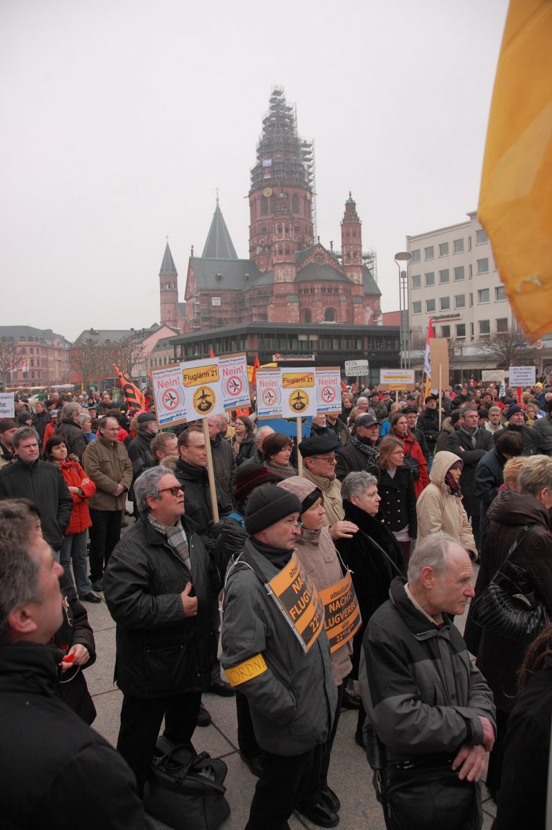 Fotos von der Demonstration gegen Fluglärm in der Mainzer Innenstadt. Laut Polizei und Veranstaltern nahmen etwa 2.500 bis 3.000 Bürger teil.