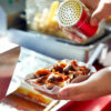 Strahlend weißer Untergrund, darauf ein wogendes Meer von paradiesisch roter Farbe, Schaumkronen aus güldenem Staub – und dann: Diabolische Schwärme bunter Plastikdreizacke verdunkeln den Himmel, fallen unbarmherzig über das Idyll her. Übrig bleiben ziegelrote Schlieren und ein paar Dreizackleichen. Eine davon piekst mir in die Schulter und sagt: „Kommst du mit in die Mittagspause?“ Hä?! Augen auf – vor mir mein Schreibtisch, alles gut, war nur ein Traum. Aber er zeigt: Der letzte Currywurst-Konsum liegt eindeutig zu lange zurück. Jacke, Portemonnaie und ein fixer Spurt zum… Moment! – warum eigentlich immer zum gleichen Imbiss? Bietet das Mainzer Angebot nicht mehr? Und wenn ja, was und wo? Zeit für einen Geschmackstest. Bald darauf zieht eine kleine Gruppe – süchtig und gierig – los, um den verheißungsvollen Test zu wagen. Der Blick über den Pappschälchenrand obligat, denn das Auge isst bekanntlich mit.