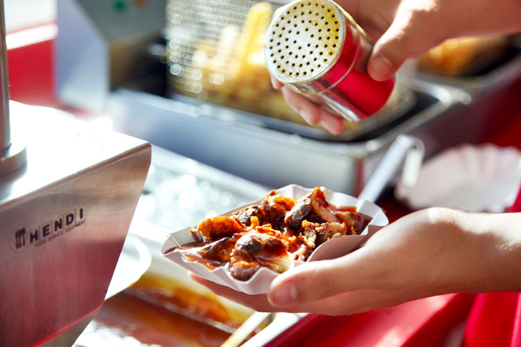 Der Habanero-Chili heizt in der Meenzer Worschtstubb (Hauptbahnhof) den fünf Saucen vom „Lodernden Flämmchen“ bis zum „Meenzer Fegefeuer“ tüchtig ein. Treffpunkt für Nachtschwärmer: Mittwoch bis Samstag fällt erst um 5 Uhr die Saucenkelle. Frisch in der Bude aufgebackene Brötchen, die Worschtkarte zum Abstempeln und rundherum pulsiert die Stadt – es schmeckt einfach gut! Event: 3. Chili-Wettbewerb am 21. Oktober um 18 Uhr, die zehn Euro Startgeld pro Teilnehmer gehen komplett an den Gewinner. Natürlich werden die Scoville in der Sauce dafür noch nach oben gejagt. Wer fällt wohl diesmal als letzter vom Hocker? Die Schärfespezialisten servieren auch die ganz normale Currywurst, doch auch hier ist die Sauce ein wenig rassiger abgeschmeckt.