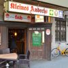 Bier Nummer drei. Langsam werden wir immer lustiger. Aus den Boxen schaukelt uns Sacrifice von Elton John in den Wohlfühlmodus. Selbst jetzt, um 2 Uhr, ist im Kleinen Andechs fast jeder Tisch besetzt. „Das geht immer erst spät los bei uns“, sagt Wirtin Irina. Von Sonntag bis Samstag ist hier von 17 Uhr bis um 4 Uhr geöffnet – mit durchgehend warmer Küche. Spezialitäten sind Hummus (6 Euro) oder Rindswurst (4 Euro). Der halbe Liter Bitburger schlägt mit 3,50 Euro zu Buche, Früh Kölsch kostet 1,80 Euro. Insgesamt finden sich neun Biersorten auf der Karte. Für gewöhnlich hängen dicke Zigaretten-Schwaden in der Luft. Die Wände sind mit dunklem Holz vertäfelt, die gelben Hängelampen spenden schummriges Licht. Die urige Altstadtkneipe hat Flair und hohes Versack-Potenzial.