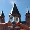 Durch die Hintergassen des Doms schlendern wir danach in das Herz der Altstadt. Nächster Halt ist das Weinhaus Spiegel. Am Nachmittag ist es auf den Außenplätzen vor dem alten Fachwerkhaus aus dem 17. Jahrhundert schattig und kühler, was aber nach dem Sonnetanken am Markt sehr angenehm ist. Ein großer Pluspunkt ist die zentrale Lage, man kann wunderbar die Menschen beobachten, die hier vorbeischlendern. Für manche gibt es nichts Spannenderes. „Hier kann man gut Parade gucken“, freut sich eine Dame am Nachbartisch. Und ihre Begleitung betont, dass das Schorle trinken am Samstag Nachmittag eine Mainzer Tradition ist: „Das gehört zum Samstag dazu, sonst wär ´s ja kein richtiger.“