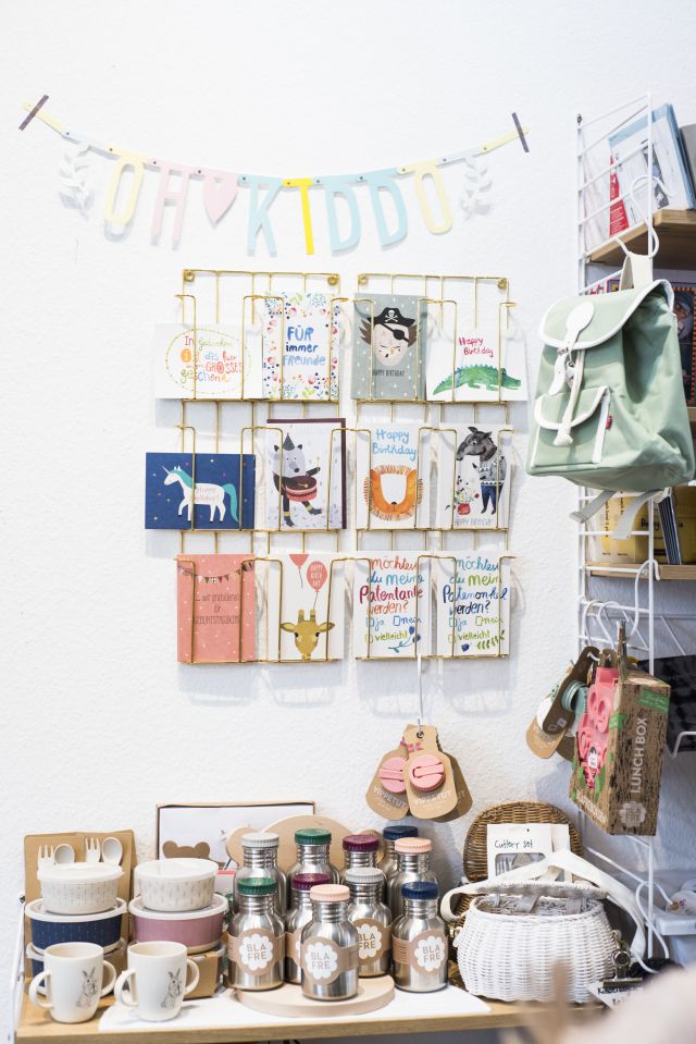 Das kleine Geschwisterchen von „Fuchs&Bente“ ist anderthalb Jahre alt. Zwei Türen weiter von ihrem ersten Concept-Store haben Franziska Fuchs und Bente Oelkers mit „Oh Kiddo“ den Raum, um Produkte zu präsentieren, die im Hauptladen immer schon nach mehr Platz geplärrt haben: schöne Dinge, die für Kinder gedacht sind, aber auch Eltern gefallen und der ganzen Familie Spaß machen sollen. Wer Bedarfsartikel sucht, ist hier falsch: Windeln, Flaschen oder Kinderwagen gibt es nicht. Wenn das Laufrad allerdings wie eine Vespa aussehen soll oder das Essgeschirr wie ein minimalistisch gestalteter Tierkopf, dann findet man hier Praktisches. Bücher und Spielsachen jeder Art werden geboten sowie Kleidung. Das Angebot ändert sich ständig. Hier werden Menschen fündig, die hübsche Geschenke für Kind und / oder Eltern suchen oder die sich und ihrem Nachwuchs einfach mal was gönnen wollen. Wer möchte, kann bei „Oh Kiddo“ eine Wunschliste anlegen, zur Orientierung für werdende Paten- oder Großeltern. Was sich mittlerweile schon herumgesprochen hat ist, dass „Oh Kiddo“ im Frühjahr und Herbst zu einem Garagenflohmarkt einlädt.