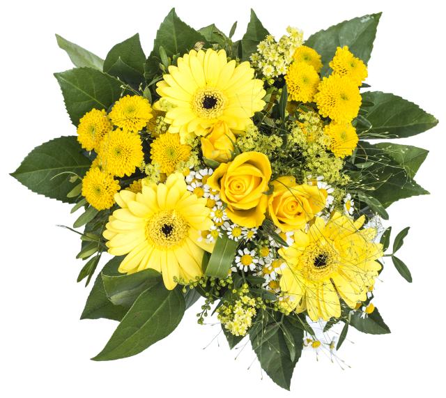 Der Strauß für 14,99 € besteht aus gelben Blüten (Rose, Gerbera, Kamille) und Grün. Er ist mittelgroß. Wer keine Beratung möchte, keine individuellen Wünsche hat und auf die Schnelle „irgendwas“ braucht, kann hier gut hingehen und wird auch Vieles finden.