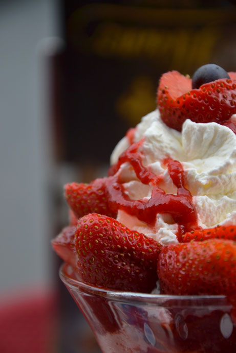 Möglichst frische Zutaten? Fabrizio Rizzelli macht sich da nichts mehr vor: Für den gewöhnlichen Schlecker sei die Farbe entscheidend, nicht der Inhalt. Mit viel Aufwand hat er einmal Pistazieneis nur aus echten Pistazien produziert. Das Ergebnis war gräulich, seine Kunden irritiert. Seitdem gibt es wieder grünes Pistazieneis, auch wenn Farbstoff rein muss. Zu empfehlen sind die Spezial-Sorten Zuppa Inglese (marmoriert mit in Likör getränktem Biskuit) oder Pfirsich-Aprikose, ganz besonders aber das traditionelle „Cassata“. Dieses der italienischen Schichttorte nachempfundene Eis mit kandierten Früchten ist ein echtes Qualitätsmerkmal im Eissegment, haben wir uns sagen lassen – kann halt nicht jeder. Alle Gelaterias variieren ihr Angebot je nach Monat und Nachfrage, deshalb gibt es Cassata nicht immer überall. Also beim nächsten Eisdielenbesuch einfach mal nachfragen. Zu Schoko: Wer viel Milch und wenig Kakao bevorzugt, ist hier richtig. In Sachen Erdbeere mögen‘s die Rizzellis süffig.