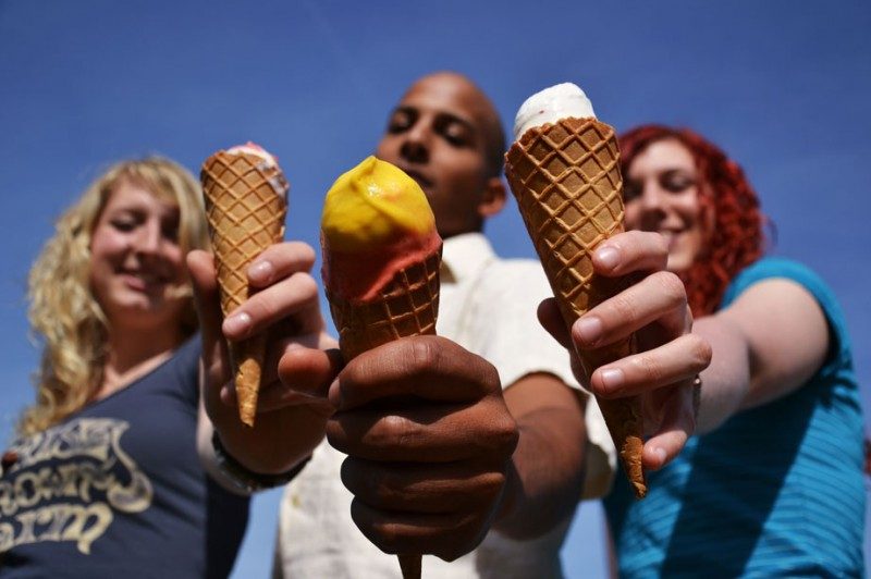 Eis Schlecken kühlt ab, schmeckt lecker und sieht gut aus. Auch bietet es Anlass zu Diskussionen: Milch oder Frucht? Löffeln oder schlecken, oder gar beißen? Natürlich Bio oder künstlich mit Zungenfärbeeffekt? Diese wichtigen Fragen zu beantworten wäre nicht nur schade, sondern auch unmöglich. Wir konzentrieren uns deshalb auf eine Bestandsaufnahme der Mainzer Eislandschaft, testen Schoko und Erdbeere, prüfen Stärken und Schwächen. Gleich vorweg: Der Preis pro Kugel beträgt mit zwei Ausnahmen überall 90 Cent. Und: Alle Eisdielen verwenden, wenn saisonal verfügbar, frische Früchte. Interessant zu wissen ist auch, wo unsere Gelatieris eigentlich ursprünglich herkommen: Die meisten Eiscafés heißen nämlich nicht zufällig „Dolomiti“, „Rialto“ oder „Venezia“. Ihre Betreiber stammen alle aus Norditalien, wo es schon vor der Erfindung des Kühlschranks gefrorenes Wasser gab. In den fünfziger Jahren haben in Deutschland viele Italiener das Eis aus ihren Häusern heraus verkauft und verwendeten Holzdielen als Ladentheken. Daher der Begriff „Diele.“ Und jetzt wird losgeschleckt …