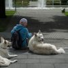 Gemächlich folgt Akito nun also alleine seinem Mixtur aus Polarwolf und Schäferhund Herrchen oder bleibt gelassen stehen, wenn Detlef mal wieder neugierigen Passanten Rede und Antwort steht. Ein wenig wundert es ihn dabei schon, dass trotz der Größe der Hunde kaum jemand Berührungsängste zeigt. „Vor schwarzen Hunden haben die Leute meistens Angst, aber mit der schneeweißen Farbe ihres Fells verbindet man wohl eher etwas Friedliches wie Himmel oder Engel.“ Auf seinen Spaziergängen knüpft er daher immer wieder Kontakte: „Da gibt es schöne, aber auch weniger schöne Begegnungen.“ So haben Diwa und Akito schon bei einem Fotoshooting eines Hochzeitspaares als „Brautjungfern“ agiert. Andererseits fühlt sich manch ein Hundebesitzer provoziert, wenn er die großen Weißen nicht an der Leine führt. Ob man dem eingespielten Team auch in Zukunft im Stadtzentrum begegnen wird, ist noch ungewiss. Seit kurzem ist Detlef auf der Suche nach einer neuen Bleibe für sich und seine „Familie“ – mit Platz für zwei Hunde – denn auf jeden Fall möchte er sich nach einer angemessenen Trauerphase wieder einen zweiten weißen Hund anschaffen. Am Goetheplatz will er dann nicht mehr länger bleiben. Die zunehmende „Ghettoisierung“ dort störe ihn.