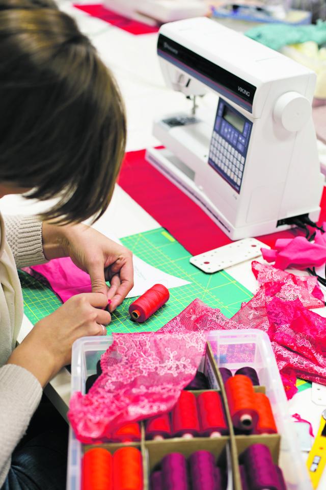 Heute zählt natürlich auch das Aussehen. Und das könne das Ego stärken. „Jede Frau meckert doch an irgendwas: zu kleine Brüste, zu viel Hüftgold – egal wie hübsch sie ist!“, klagt van der Werve. Eine Frau in passgenauer Unterwäsche fühle sich gewachimmer aufgewertet, ist sie überzeugt. Von ihren Schülerinnen und Schülern verlangt van der Werve exaktes Arbeiten. „Zwei Millimeter Unterschied hier und da, dann hat man statt einem gut sitzenden T-Shirt eben ein eher lockeres“, erklärt sie. „Bei einem BH bedeuten zwei Millimeter, die sich bei jedem Arbeitsschritt dazuaddieren, dass er am Ende einfach nicht passt.“ Ich seufze, denn offensichtlich habe ich mit meinen Anfängerkenntnissen meine Stoffteile nicht präzise vernäht. Das Muster auf der Spitze verläuft nicht glatt. Doch nach drei Stunden habe auch ich mein eigenes Höschen. Der passende BH in Größe 80B soll bald folgen. Dem Valentinstag steht nichts mehr im Wege…