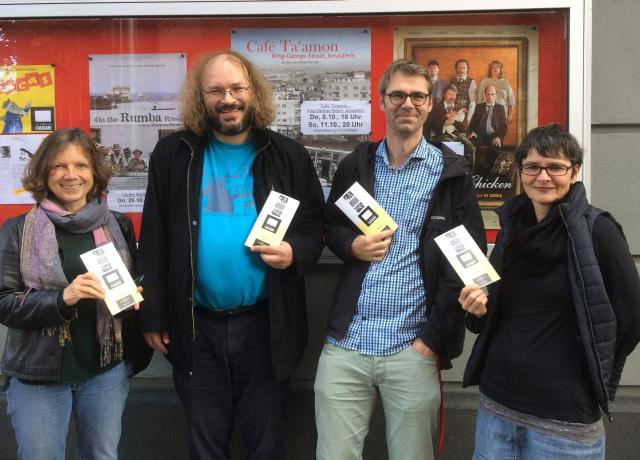 Neu ist dagegen das Neustadtkino, eine Reihe, die Mark und Felicitas Pommerening, Hanno Schmidt und Nadine Daschmann initiiert haben. Eine Lehrerin, eine Autorin, ein Software- Entwickler und ein Biologe also mit dem gemeinsamen Hobby Film. Angeregt von dem Wunsch, gemeinsam etwas auf die Beine zu stellen und das Leben in der Stadt aktiv mitzugestalten, kamen die vier auf die Idee eines Wanderkinos. Entweder sucht man sich besondere Locations und dann den dorthin passenden Film – oder andersrum.