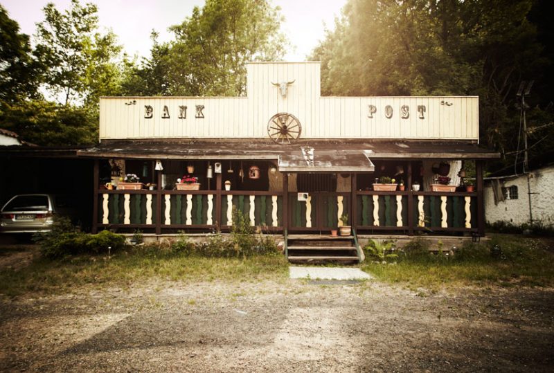 Ob er selbst schon mal in den Staaten gewesen ist, wollen wir wissen. Jesse verneint: „Da gibt es auch nichts mehr zu sehen von damals – außer vielleicht ein paar Plastikkakteen. Wenn überhaupt, würde mich noch Kanada interessieren.“ Doch ob es eines Tages dazu kommen wird, ist fraglich. Schon einmal sind Jesse und seine Frau Elisabeth umgezogen. 1982 bis 1999 unterhielten beide eine Kneipe im Hunsrück. Danach übernahmen sie das Gelände am Geiersköppelweg, ein Erbe seiner Frau. Einst wurde auf dem Gelände Sand für Schotts Quarzproduktion abgebaut, später diente es als Müllkippe. „Als wir anfingen, die Stadt aufzubauen, mussten wir alles entrümpeln“, erinnert sich Jesse, „aber am nächsten Tag war gleich wieder alles voll Müll.“ So bauten sie einen Zaun drum rum, dann den Saloon und schließlich Häuser, die Werkstatt und die Kirche. Heute lebt er zusammen mit seiner Frau auf dem Gelände im Guns’n‘Pistols. „Eine Wohnerlaubnis zu bekommen, war damals kein Problem“, lächelt er, „die ehemaligen Bürgermeister Jockel Fuchs und Karl Delorme haben hier ganz gern einen getrunken.“