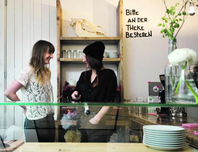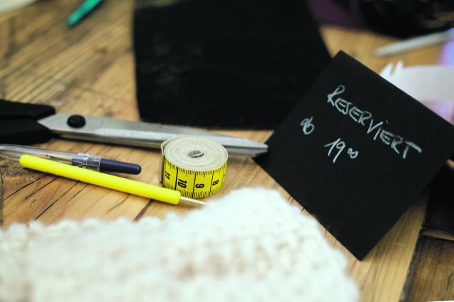 An der großen hölzernen Tafel ist schon alles vorbereitet: Wo sonst Zuckerdöschen und Kaffeetasse das Erscheinungsbild zieren, stehen heute Nähmaschine und Stricknadeln, liegen mehrere Lagen Stoff und einige Knäuel Wolle. Am Kopf des Tisches stimmt ein großer Adventskranz in die nahende Weihnachtszeit ein, natürlich selbst gemacht, unkonventionell und besonders, entstanden in einem der vielen Workshops, die Nina Wansart und Alexandra Döring in ihrem Cafè „Wildes Leben“ in der Neustadt anbieten. Heute stehen die Geschenke für die Liebsten auf dem Programm – ein gestricktes Stirnband oder eine selbst genähte Handtasche gibt es zur Auswahl. „Wie war das jetzt noch mal?“, fragt Laura leicht verschämt. „Meine Mutter hat mir das Stricken zwar beigebracht. Aber ich habe so vieles schon wieder vergessen…“ Von Handarbeitsunterricht hat das Ganze kein bisschen, viel mehr ist es ein freundschaftliches Miteinander. „Soll ich mal die erste Reihe für dich stricken und dann übernimmst du? So ist es am Anfang vielleicht einfacher für dich.“ Während der Betrieb normal weiter läuft, erklärt Alex die ersten Schritte. „Das sind so alte Handarbeitstechniken, die früher ziemlich verstaubt und spießig waren und jetzt wieder aufleben“, meint Alex, „so ein kostbares Wissen sollte man weiter tragen und möglichst viele Menschen erreichen – das ist unser Ziel.“ Alex und Nina haben sich ihr Wissen hauptsächlich selbst angeeignet, doch die Basics stammen – na klar – von der Großmutter. „Ich habe einfach nach dem Prinzip ‚Trial & Error’ losgelegt und wenn ich nicht weiter wusste, hab’ ich die Oma angerufen, die weiß natürlich alles!“, scherzt Nina und schaut immer mal wieder zu Tatjana, die sich als zukünftige Hobbyschneiderin an ihrer ersten eigenen Handtasche versucht. Konzentriert, fast angespannt sitzt sie an der Nähmaschine und folgt den automatischen Stichen der Nadel. Es scheint zu funktionieren, die Nähte folgen einer geraden Linie, die Anspannung löst sich – ein Lächeln. DIY, das ist also auch Herausforderung, Eigeninitiative und Anstrengung.