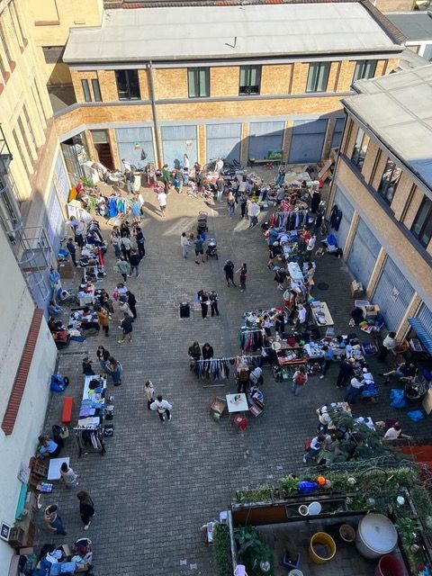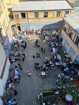 Zurzeit sind im Erdgeschoss des „Ollohof“ noch Garagen untergebracht, doch die Vision der Eigentümer ist es, hier schon Ende des Jahres kulturelle Veranstaltungsräume und Gastronomie zu eröffnen. In der Ecke zwischen den Garagen gibt es bereits eine offene, vereinsbetriebene Werkstatt.