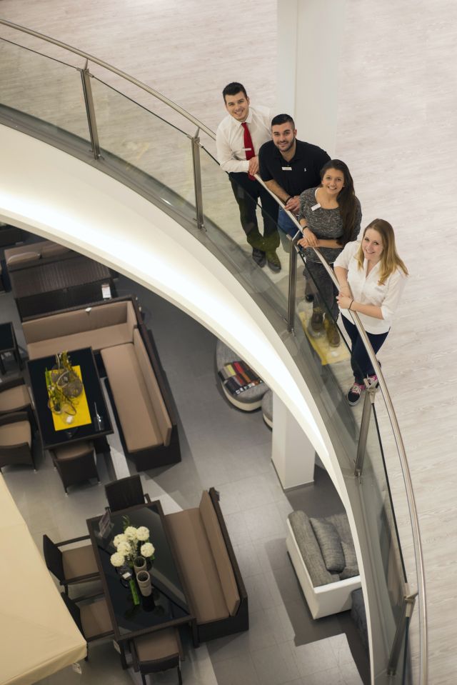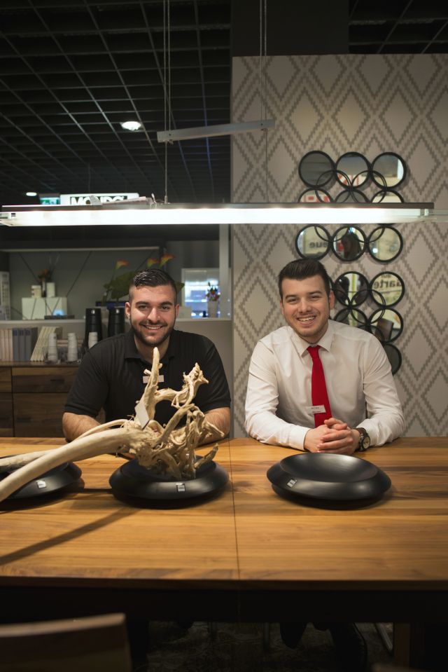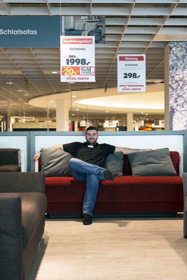Jasmin Reinhardt ist 16 Jahre alt und lernte Möbel Martin über eine Werbung kennen. Sie absolviert hier im ersten Lehrjahr ihre Ausbildung zur Einzelhandelskauffrau. Als Realschülerin mache sie Praktika im Büro und bei einem Fotografen, merkte dabei aber, dass beides nicht ihr Ding ist. Sie wollte lieber verkaufen und mit Menschen zu tun haben. Seit August durchläuft sie verschiedene Abteilungen, packt Ware aus, baut sie zusammen, berät Kunden, ist bei Verkaufsgesprächen ihres so genannten Paten – einem erfahrenen Einrichtungsberater – dabei und bearbeitet Reklamationen. Insgesamt wird Jasmin bis zum Ende ihrer Lehrzeit nach drei Jahren elf Abteilungen kennen lernen und kann sich dann entscheiden, in welcher sie ihre Abschlussprüfung machen will. Überhaupt ist für sie die Abwechslung das Argument schlechthin. Anil Yavuz ist ebenfalls Azubi, 22 Jahre alt und schon mit etwas mehr Berufserfahrung ausgestattet. „Hier ist Leben. Man hat den ganzen Tag mit Menschen zu tun. Das macht mir Spaß“, beschreibt Anil die Vorzüge seiner Lehre im Möbelmarkt. Der junge Mann kann es kaum erwarten, selbst zu verkaufen. Wünsche für die Zukunft hat er auch: „Erstmal die Lehre erfolgreich abschließen und dann würde ich sehr gerne als Einrichtungsberater in der Küchenabteilung arbeiten.“