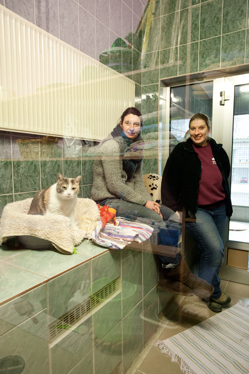 Um die Aufgaben bewältigen zu können, sind ehrenamtliche Mitarbeiter unverzichtbar. Eine von ihnen ist die Studentin Inga von Rüling. Seelenruhig steht sie im Käfig von Perserdame Minusch und krault ihr Fell. Minusch teilt sich ihre Behausung mit Mimi und so kriegt sie natürlich auch einige Kuscheleinheiten von Inga. Sie ist eine sogenannte „Katzenstreichlerin“. Mehrmals in der Woche kommt die junge Frau vorbei, um ein wenig Zeit mit den Stubentigern zu verbringen. Auch Hundeausführer, die mit Bello und Kollegen Gassi gehen, opfern regelmäßig Zeit für die Tiere. „Die Arbeit der Ehrenamtlichen ist sehr wichtig für uns. Viele Tiere bei uns sind traumatisiert und benötigen viel Zuwendung“, sagt Tierheimchefin Anja Kunze. „Die „Schmusetanten“ strahlen Ruhe und Gelassenheit aus, die uns Hauptamtlichen im Alltagsstress manchmal etwas abgeht.“ Wen diese Arbeit interessiert, ist hochwillkommen. Bedarf an zusätzlichen Kräften besteht immer.