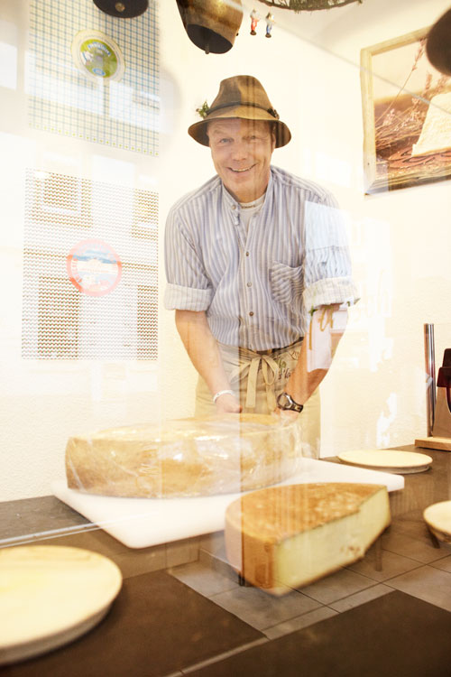 An zwei Wochenenden im Monat kommt Charly dann in seinen Laden nach Mainz, um seine Köstlichkeiten feil zu bieten. Durch den großen Aufwand liegt der Preis oft etwas höher als bei herkömmlichen Käseprodukten aus dem Supermarkt. Doch wem der Gaumengenuss etwas wert ist, der ist schon ab 1,60 Euro für 100 Gramm dabei. Insgesamt bietet Charly je nach Jahreszeit zwischen 15 und 20 Sorten an. Die Auswahl reicht von diversen Senner- und Berg-Käsen über Ziegen-Camembert und Bauernkäse bis zum vier Jahre alten Sbrinz Hartkäse. Zwei Sorten stellt er sogar selbst her. Der Andrang ist groß, zeitweise schneidet und verpackt der Allgäuer die Käseportionen wie am Fließband. Für eine Beratung nimmt er sich jedoch immer Zeit. Dass der Verkäufer fast alle seine Kunden duzt, mag auf den ein oder anderen befremdlich wirken, doch für ihn ist das selbstverständlich: „Der Genuss von Käse hat ja auch mit Freizeit zu tun. Da kann es schon lockerer zugehen. Außerdem kennt man sich. Die meisten sind ja Wiederholungstäter.“ So wie die Mainzerin Rosa Lübke: „Ich kaufe bei ihm schon seit zehn Jahren ein. Hier weiß ich, dass der Käse schmeckt und ich ein gutes Naturprodukt bekomme.“ So wie seine Kunden den Käse, so schätzt auch Charly die gute Kundschaft aus Rheinhessen. Ansonsten aber ist Mainz nicht so ganz sein Revier: „Im Sommer am Rhein, das kann schon recht schön sein. Aber wenn es den Rest des Jahres so grau ist, dann zieht es mich doch wieder in die Berge.“