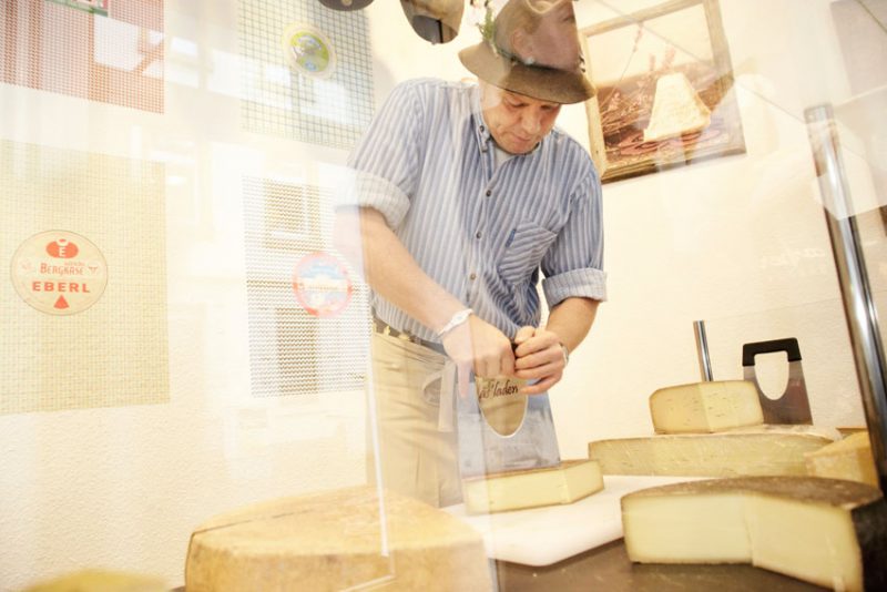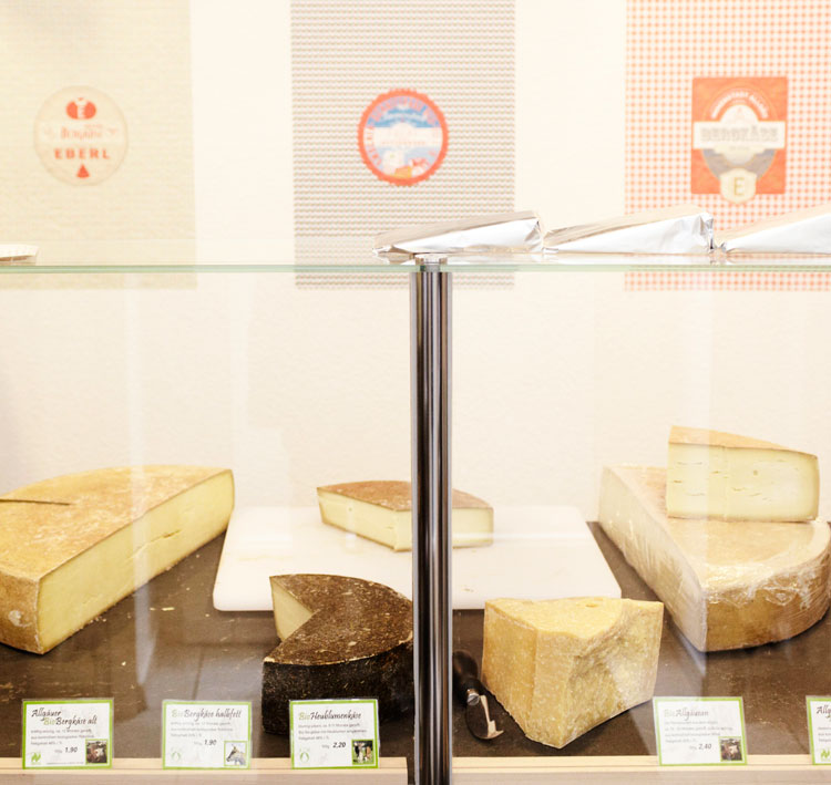 „Das besondere am Alpkäse ist sein würziger Geschmack. Der kommt von der frischen Heumilch“, erklärt der diplomierte Fromager und Käsesommelier. Die Tiere fräßen nur frisches Gras von der Weide, Kräuter und Heu. Dadurch ist die Alpkäse-Rohmilch reich an Omega-3-Fettsäuren, also gesund und gut bekömmlich. Pult arbeitet nur mit kleinen Käsereien zusammen, zumeist privat geführte Sennereien und Käsemanufakturen aus dem Allgäu, Voralberg und der Schweiz. Damit möchte er dem Trend entgegenwirken, dass die großen Käsereien die kleinen aufkaufen und die besten Sorten als Massenware produzieren. „Das Ergebnis ist nämlich, dass einige von den kleineren Betrieben ausbluten. Qualität und Vielfalt bleiben dann auf der Strecke“, ärgert er sich.