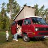 Gemächlich schlängelt sich Bobby durch die engen Neustadtstraßen. Mit seiner knallroten Farbe zieht er die Blicke auf sich. Er surrt und schnurrt wie ein junger Kater, dabei hat Bobby schon an die 30 Jährchen auf dem Buckel. In all den Jahren hat er schon viel von der Welt gesehen, denn Bobby ist ein T3-VW-Bulli. Er gehört neben „Bronko“ und „Paula“ zu einer großen Truppe von alten VW-Bussen, die Uwe Bosshammer (42 Jahre) über seine Bulli-Vermietung ‚Hanggtime‘ von Mainz aus für Trips quer durch Europa vermietet. Und dabei ist oft der Weg das Ziel. „Mehr als 500 Kilometer solltest du mit dem Bus an einem Tag nicht fahren, sonst ist es kein Urlaub mehr“, empfiehlt Bosshammer den eigensinnigen Charakter seiner Flotte. Und diese Gemächlichkeit wünschen sich seine Kunden. Ziele wie Kroatien oder Südfrankreich sind mit den modernisierten Bussen also durchaus drin. „Die Motoren der Bullis sind alle auf aktuellem technischem Stand und Servolenkung gibt’s auch fast serienmäßig.“ So schafft es auch die 23-jährige Studentin problemlos, das Gefährt entlang enger Küstenstraßen zu manövrieren.