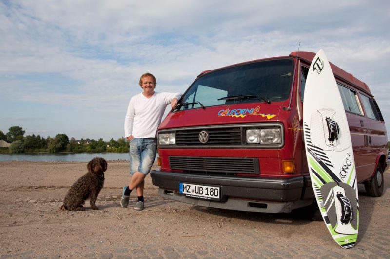 Heute möchte er nichts anderes mehr tun. Als studierter Maschinenbauingenieur hat Bosshammer lange Zeit im Vertrieb in der Automobilbranche gearbeitet und kennt das Geschäft. „Ich war aber nie so der Anzug-Typ.“ Den Anzug und seinen alten Job hat er eingetauscht in ein Leben zwischen Meer, Strand und Bullis. Und nicht zu vergessen: Sein Hund Balu ist auch immer mit dabei. „Den habe ich irgendwo in Spanien am Kiosk geschenkt bekommen.“ Seitdem sind die beiden unzertrennlich. Und der Fahrtwind ist ihr treuster Begleiter.
