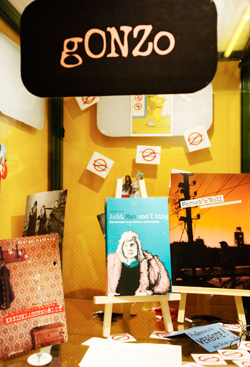 Das besondere an der „Freakbuchhandlung“ ist die ungewöhnliche Auswahl an Literatur: „Unsere Philosophie ist es, keine Bücher anzubieten, die auch bei Hugendubel auf dem Tisch liegen“, sagt Spies. Neben eigenen Gonzo-Büchern kann man dort auch Werke von ähnlich strukturierten, in der Regel kleinen, Verlagen finden. Alles, nur kein Mainstream.