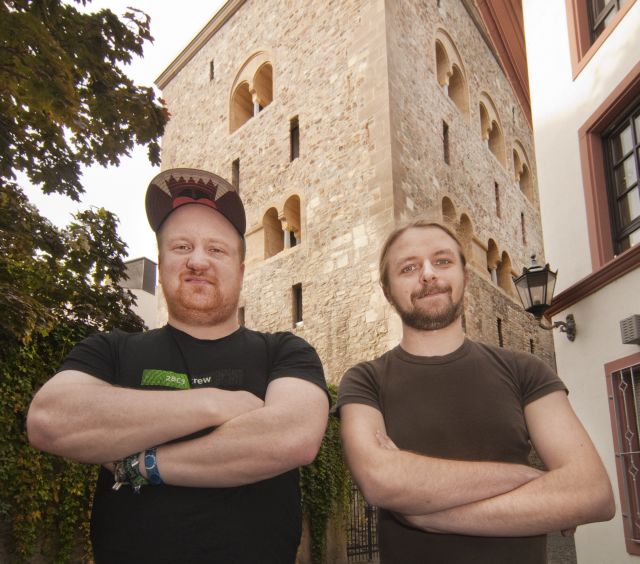 Ein Besuch bei Moritz und Claudius beginnt mit der Suche nach kleinen Steinchen auf dem Gehweg vor ihrem Haus, mit denen man gegen eines der Fenster im Erdgeschoss wirft, um auf sich aufmerksam zu machen. Eine Klingel oder einen Türsummer haben die beiden 25-Jährigen nicht, stattdessen steckt einer der Jungs den Kopf aus dem Fenster und wirft den Schlüssel hinunter, sodass man sich Einlass verschaffen kann. Seit 13 Jahren sind die zwei Technik-Freaks beste Freunde. Bereits als Teenager organisierten sie gemeinsam in ihrer Heimat Pirmasens Partys. Mit einem VW-Bus und einer Anlage tourten sie durch die Gegend und sorgten auf Abi- und Geburtstagsfeiern für den richtigen Sound. Weil es gut lief, beschlossen Moritz und Claudius ihr Hobby zum Beruf zu machen und gründeten mit 18 Jahren eine Firma für Veranstaltungstechnik. Ihr Equipment bauen die beiden selbst, schreinern, basteln, löten, programmieren – alles in ihrer Wohnung in der Altstadt.
