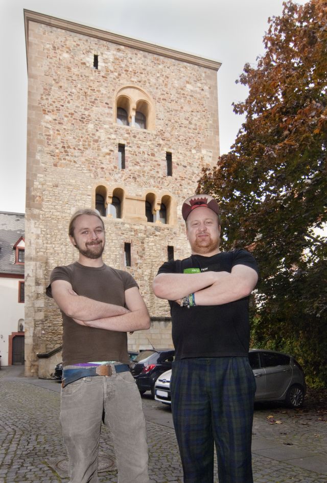 Wenn man durch die Altstadt geht, vermutet man nicht, dass sich zwischen den Fachwerkhäusern des Spätmittelalters, klassizistischen und modernen Wohnbauten der 70er Jahre auch ein wehrhafter Bau der Romanik befindet. Etwas versteckt steht in der Weintorstraße das “Haus zum Stein”, ein städtischer Wohnturm, wie es ihn in Deutschland kaum noch gibt. Moritz und Claudius verbinden das historische Gemäuer mit moderner Technik und innovativen Ideen.