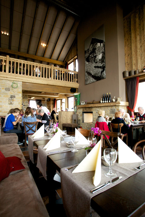 Herzstück ist die Weinbergshütte, ein gut-bürgerliches Restaurant mit angeschlossener Panorama-Terrasse. 140 Sitzplätze stehen den Gästen zur Verfügung. Dass hier ein Neubau entstanden ist, glaubt man allenfalls, wenn man das langgestreckte Hofgut samt Hofscheune und Reithalle von außen betrachtet. Im Restaurant selbst ist Christian Barth ein architektonischer Kunstgriff geglückt: Die Gäste sitzen in einem urig-gemütlichen Raum, erleben ein Hüttenambiente mit Wohlfühlfaktor, als sei das Hofgut schon seit 30 Jahren hier etabliert. Gutsverwalter ist Martin Joham, ein Österreicher aus Kärnten, der seit 25 Jahren in der Gastronomie tätig ist und dem Dienstleistung und Service- Denken über alles geht. Das Konzept jedenfalls kommt an. Seit der Eröffnung brummt der Laden. Wer im Restaurant einen Platz sicher haben will, sollte telefonisch reservieren. Bei schönem Wetter darf‘s auch ein Spontanbesuch werden, dann steht zusätzlich reichlich Platz im Hofgarten zur Verfügung, allerdings heißt es bei den Getränken draußen Selbstbedienung, dazu gibt´s herzhafte Schmankerl vom Drehgrill.