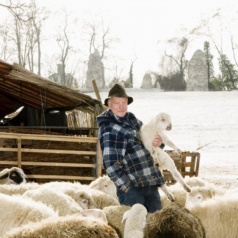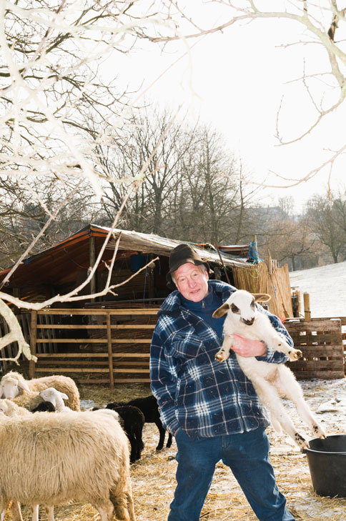 Am meisten liebt der über 60-Jährige die Arbeit in der Natur. Sein Gesicht ist wettergegerbt und die Hände können zupacken. „So viele Winterlämmer waren nicht geplant“, Dorn überblickt mit seinen Bergsee-blauen Augen den wilden Kindergarten. „Ein paar Böcke sind mir letzten Sommer ausgebüchst und waren auf Freiersfüßen unterwegs.“ Er lacht und gräbt die Hände tiefer in die Tasche seiner dicken Jacke. Es ist kalt. Den alten Tieren, manche sind bereits 15 Jahre alt, macht das nichts aus. Aber der Lämmer wegen kommen alle Schafe über Nacht in den Unterstand. Mitte Juni, nach der Schafskälte, werden sie geschoren.
