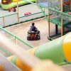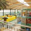 Der Indoor-Spielplatz Tobolino ist leicht zu finden: Er liegt direkt gegenüber der Abfahrt von der B9 in Mainz-Laubenheim. Auch mit dem Bus ist er gut zu erreichen, die nächste Haltestelle ist nur 100 Meter entfernt. Beim Betreten der rund 2.800 Quadratmeter großen Halle fällt als erstes der riesige Klettervulkan ins Auge. Die Kinder können gerade so vor ihm zurückgehalten werden. Zuerst aber steht Schuhe ausziehen auf dem Programm. Eine Garderobe gibt es leider nicht, also wird alles auf einem Haufen neben einen der vielen umherstehenden Tische geworfen. Die Kinder verteilen sich schnell über die gesamte Fläche, Erwachsene würden sich jetzt am liebsten einfach nieder lassen. Das geht aber nicht so einfach, den die Spielfläche ist zu unübersichtlich und die Kinder geraten schnell aus dem Blickfeld. Also bleibt nichts anders übrig, als mitzuspielen. Was aber nicht schlimm ist, denn das Angebot ist reichhaltig: Trampoline, ein Hindernis- und Kletterparcours, ein aufblasbares Riesenkrokodil, in dessen Schnauze sie klettern können. Mehrere Hüpfburgen, eine Rollenrutschbahn, ein Karussell und ein abgetrennter Kleinkindbereich runden das Angebot ab. Essen und Trinken gibt es zu moderaten Preisen an der Theke, es kann aber auch von zu Hause mitgebracht werden. Die Toiletten sind sauber und ordentlich. Ein separater Wickelraum ist vorhanden. Die Kinder toben herum. Die älteren entdecken das Bungee-Trampolin, ein Angebot, das leider extra kostet. Und es ist nicht das einzige: Einige der Spielgeräte wie Elektro-Autos oder Bällebagger kosten ebenfalls zusätzliches Geld. Eltern, deren Budget beschränkt ist, müssen sich hier auf Diskussionen einstellen. Am Ende des Besuchs sind aber alle Kinder begeistert. Die größeren sind sich einig: Der Vulkan gewinnt. Die Kleineren haben eine andere Meinung: Rollenrutsche und Karussell sind vorne mit dabei.