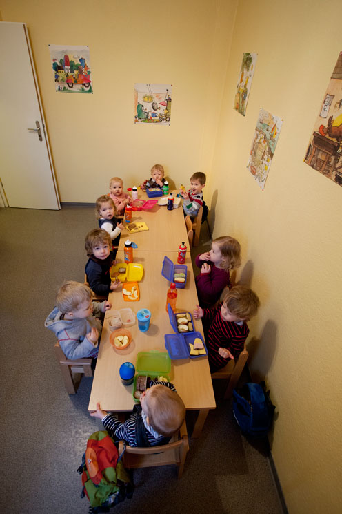 Wer einen Platz in einer städtischen Einrichtung erhält, hat Glück gehabt. Sie sind in der Regel die kostengünstigste Alternative; städtische Kindergärten in Rheinland-Pfalz sogar beitragsfrei. Die Kinderkrippe „Sonnenschein“ in Bretzenheim fällt aus dem Rahmen, denn sie ist privat geführt und erhält daher keine finanzielle Unterstützung vom Land. Anders sieht das bei kommunalen und kirchlichen Einrichtungen aus, auch Elterninitiativen erhalten Gelder. Regina Bolands Krippe ist entsprechend teurer, „nur Gutverdiener können sich einen vollen Fünf-Tages-Platz leisten“, bemängelt sie. Ihre Warteliste ist dennoch lang. Denn trotz des Rechtsanspruchs reicht das kommunale Angebot nicht aus. Krippen wie die von Regina Boland fangen den Nachfrageüberschuss auf.