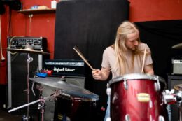 Bange zu haben, die Räumlichkeiten gleich wieder verlassen zu müssen, ist eines der Hauptanliegen der Mitglieder. Ganz einfach ist die Situation nicht, zumal das Gebäude, in dem „U-Kult“ untergebracht ist, unter das Gewerbemietrecht fällt, was eine einmonatige Kündigungsfrist ermöglicht. „In Mainz gibt es Immobilien- Haie, die genau solche Situationen ausnutzen, die sind auch in der Szene bekannt. Da werden Geschäfte aus etwas gemacht, aus dem man eigentlich keine Geschäfte machen sollte. Es ist ohnehin schon ein gewisser Kampf als Musiker, auf null rauszukommen“, erklärt Jasper und spielt damit auf Unternehmen an, die unter vermeintlich vorgeschobenen Argumenten Profit aus Flächen schlagen, auf die die kreative Szene in Mainz angewiesen ist. Den Mut lassen sich die Mitglieder trotzdem nicht nehmen und erst recht nicht die Motivation, mit der sie jeden Tag an ihre Werke gehen. Es herrscht eine vitalisierende Stimmung bei „U-Kult“. Kurz vor Verlassen des Gebäudes gibt es noch eine Einlage von Esa, Alex und Max.