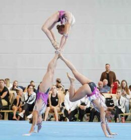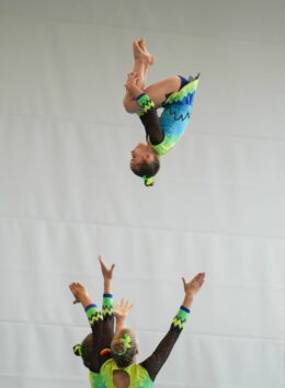 Der Formationsteamsport soll dabei auch wieder mehr Jugendlichen nähergebracht werden. Besonders junge Männer finden eher selten den Weg in den Verein. Doch was genau ist Sportakrobatik? Die Antwort fällt kurz und bündig aus: Artistik und Bodenturnen, kombiniert mit Choreografie und Tanz! Und ganz wichtig: Die passende Musik darf nicht fehlen. Paare, Trios und auch vereinzelte Vierer-Formationen turnen in verschiedenen Kategorien. Balance und Tempo sind zwei davon. Gehaltene Kraftelemente, wie zum Beispiel die Handstände, gibt es genauso wie dynamische Bewegungen, etwa den Salto. Jede Performance darf maximal 2 1/2 Minuten lang sein und wird nach einem international geltenden Regelwerk bewertet. Dabei fließen Ausdruckskraft und das tänzerische Vermögen der Sportler mit ein. Auf Perfektion kommt es an, doch noch wichtiger ist ein verlässliches Vertrauen in die Teamkollegen, wenn man durch die Luft gewirbelt wird.
