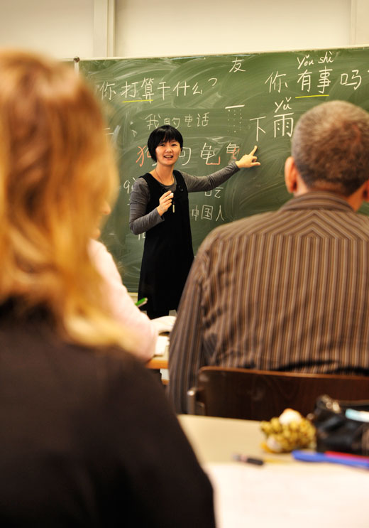 Jeden Samstagvormittag findet in den Räumen der Berufsbildenden Schule III ein etwas anderer Unterricht statt. Es wird Chinesisch gelehrt und gelernt. Der Verein Mainzer Chinesische Schule e.V. (MCS) veranstaltet hier seine Sprachkurse für chinesische und deutsche Schüler. Für chinesische Schüler? Genau, denn der Verein wurde 1998 aus einer Initiative chinesischstämmiger Eltern heraus gegründet, denen es wichtig war, dass ihre Kinder auch fernab der Volksrepublik Chinesisch sprechen und schreiben lernen. In der Region ist dies das einzige Angebot dieser Art. Kamen anfangs noch ausschließlich chinesische Schüler, wird heute auch Chinesisch als Fremdsprache angeboten. Xiaohong Yang, die Vorsitzende des Vereins, freut sich, dass in den vergangenen Jahren der Zuspruch auch unter der deutschen Bevölkerung stetig gestiegen ist. Inzwischen werden neun Klassen auf verschiedenen Sprachniveaus unterrichtet. „Die Tendenz ist steigend“, sagt Yang. Für derzeit 88 Schüler finden Kurse in den Unterrichtssprachen Deutsch und Chinesisch statt. Wir achten sehr darauf, dass die Kurse klein bleiben“, betont sie und fügt hinzu: „Chinesisch kann man nicht so einfach lernen.“ Wer sich einen ersten Eindruck verschaffen will, der kann an einem dreiwöchigen Schnupperkurs teilnehmen.