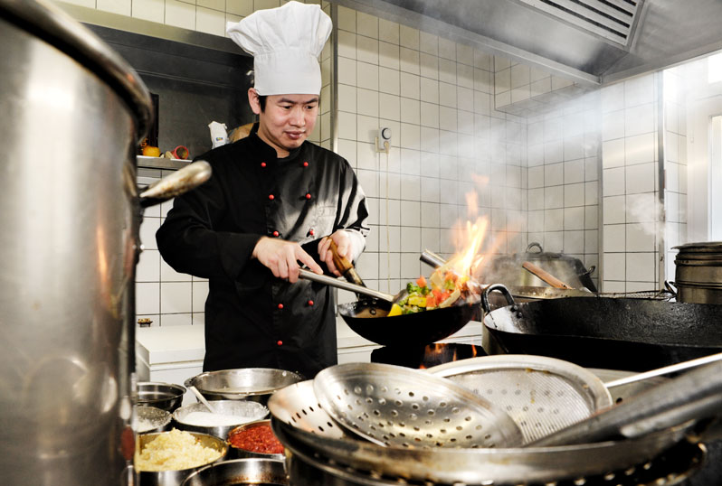 Eine Besonderheit dieses Restaurants: Die Gäste dürfen selbst Hand anlegen. In regelmäßigen Kochkursen lernen die Teilnehmer, wie man Teigtaschen zubereitet, das Fleisch schneidet und mit dem Wok umgeht. Die Anregung zu den Kursen kam von den Gästen selbst. „Viele Leute haben gefragt, wie man dies und das zubereitet“, erzählt Herr Yu.
