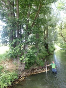 Der rechtliche Startschuss für die Renaturierung von Gewässern fiel im Jahr 2000, als die EU-Wasserrahmenrichtlinie in Kraft trat, die von den Mitgliedsstaaten einen „guten Gewässerzustand“ forderte. Als Volker Schweikard vor 35 Jahren beim Grün- und Umweltamt anfing, wurde der Gewässerzustand ausschließlich an der Gewässergüte festgemacht, also an biologisch- chemischen Parametern. „Aber man hatte den Zustand der Aue nicht im Blick. Von Natur aus fließen Bäche normalerweise nicht geradeaus. Sie schlängeln oder mäandern durch die Landschaft“, erklärt Raimund Schüller. Der Diplom-Geograf ist Experte für Auen- und Gewässerentwicklung und Berater rheinland-pfälzischer Landeseinrichtungen und Kommunen bei der Renaturierung von Fließgewässern. Durch den natürlichen, schlängelnden Verlauf fließt das Wasser langsamer ab, was zum Beispiel nach starken Regenfällen, die bedingt durch den Klimawandel häufiger werden, von Vorteil ist. Schüllers Botschaft lautet daher: „Zurück zur Natur!“