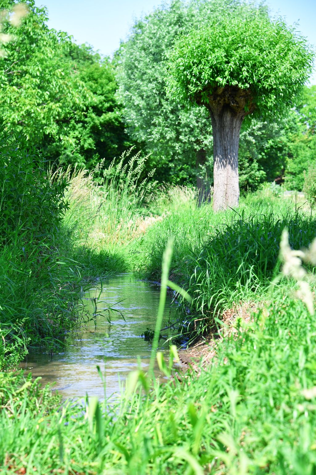 Die meisten Bach- und Flusslandschaften waren ursprünglich in eine Waldlandschaft eingebettet. „Die Waldböden der Auen wirken wie ein Schwamm, die Gehölze wie ein Kamm, der bei Hochwasser umgefallene Baumstämme und andere Feststoffe auffängt und diese daran hindert, ungebremst weiterzutreiben“, so Schüller. Gehölze spenden Bächen außerdem Schatten und verhindern im Sommer einen übermäßigen Anstieg der Wassertemperatur: „In Rheinland-Pfalz sind mehr als 50 Prozent der Fließstrecken von Flüssen und Bächen überhaupt nicht mehr mit Gehölzen bewachsen.“ Wenn man dem Bach mehr Fläche gibt, verdunstet mehr, und das trägt auch zur Abkühlung bei. Eine Gewässerrenaturierung, die dem ursprünglichen Bachlauf wieder mehr Raum gibt und auch seine Aue berücksichtigt, kann ein wichtiger Puzzlestein im Kampf gegen den Klimawandel sein. In einem guten ökologischen Zustand sind allerdings nur etwa 35 Prozent der rheinland-pfälzischen Gewässer. Und auch am Gonsbach geht es mit der erhofften Verbesserung der Wasserqualität nur langsam bergauf. Der ökologische Zustand wurde vom Landesamt für Umwelt 2022 erneut als „schlecht“ eingestuft. Die Artenvielfalt bei Pflanzen und Fischen hat sich gegenüber 2015 leicht verbessert. Der schlechte Gewässerzustand liegt auch daran, dass der Gonsbach, so idyllisch er plätschert, Teil des städtischen Entwässerungssystems ist. Um die Kanalisation zu entlasten, darf bei starken Regenfällen auch stark verdünntes Abwasser in den Bach geleitet werden. Um ihn dabei vor grober Verschmutzung zu schützen, sind mehrere Feinsieb-Rechen eingebaut. Wenn diese aber verstopfen, etwa weil Müll in die Toilette geworfen wird, können Fäkalien und Abfälle in den Bach gelangen. Wir haben es also zum Teil selbst in der Hand, wie sauber der Gonsbach ist.