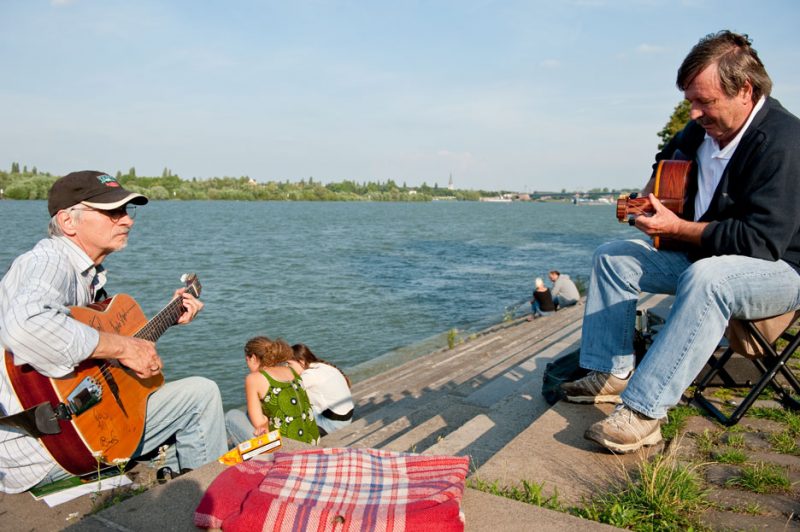 Eine erste vorsichtige Affäre zwischen den „Neustädtern“ und ihrem Zollhafen währte nur kurz. Im Frühjahr 2011, als die letzten Container geräumt waren und es langsam wärmer wurde, entdeckten die Menschen den verlassenen Industriehafen als Naherholungsgebiet. Nirgendwo sonst in Mainz hatte man so viel Platz und so viel Rhein allein für sich. Der südliche Zollhafen wurde zum Geheimtipp. Hier sonnte sich eine Studentin, da 25 Meter weiter, übten ein paar Jugendliche mit ihren Skateboards. Im Hintergrund geht ein Ehepaar mit dem Hund spazieren. Es war beschaulich. Seit dem Sommer rollen nun die Bagger. Wer den Zollhafen genießen will, muss warten, bis die Arbeiten abgeschlossen sind. Dass es dort jemals wieder so unbekümmert werden wird, scheint unwahrscheinlich.