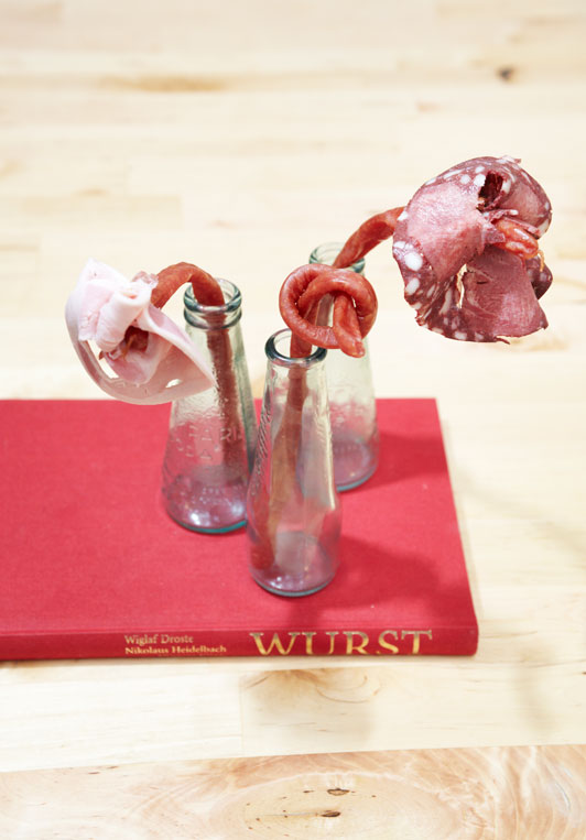 Mit Humor nimmt es Tim Sobczak (36 Jahre). In seinem Blog gibt es Wurst ohne (!) Ende. Tim ist Kreativdirektor in einer Wiesbadener Agentur für digitale Kommunikation und sein Beruf spielt eine wichtige Rolle in der Entstehungsgeschichte von „wurstblog.de“. Angefangen hat alles 2008. „Damals machte sich so eine komische Vegetarismus-Welle bei uns in der Agentur breit. Mein Kollege Flo und ich haben uns immer ein bisschen lustig darüber gemacht“, grinst Tim. Und so kam es, dass die zwei den „Mettwoch“ ins Leben gerufen haben. Jeden Mittwoch gab es zur Mittagszeit bergeweise Mettbrötchen. Zwar konnte sich der wurstlastige Mittagstisch in der Agentur nicht durchsetzen (als wir uns zum Interview trafen, gab es frischen Obstsalat!), doch der Wurstblog ist bis heute erhalten geblieben. Weil Wurst einfach lustig ist: „Schon das Wort allein ist lustig, klingt komisch und sieht typographisch witzig aus“, sagt der Textfachmann. Außerdem ist Tim inspiriert vom Wurst-Humor, wie ihn in Deutschland einst das Satire-Magazin Titanic gepflegt hat. Auf dem Blog findet der Leser auch wirklich alles rund um die Wurst: von Wurstcocktails wie ‚Wiener Colada‘ oder ‚Blutwurst Mary‘, über Wurstgeburtstagskuchen bis hin zur kohlehydratarmen Variante des Mettbrötchens – mit halber Riesenzwiebel statt halbem Brötchen unter dem Mett. Zum Lachen animieren satirische Texte, die Tim in abstrakte Höhen schraubt.