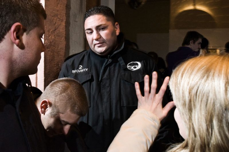 Andreas und Alex sind beide Anfang 30 und seit über zehn Jahren im Sicherheitsgewerbe. Etwa die Hälfte dieser Zeit sind sie Türsteher in einem der beliebtesten Mainzer Clubs, dem Red Cat. Gemeinsam mit Mostafa, dem dritten Türsteher der ‚Katze‘ haben sie damals im KUZ angefangen und sind heute ein eingespieltes Team. Vieles haben sie schon erlebt: „Mit den skurrilen Geschichten, die man als Türsteher mitbekommt, könnte man ein ganzes Buch füllen“, sagt Andreas, der Größte im Bunde. Die Erfahrung im Umgang mit Menschen können beide gut gebrauchen, denn sie wollen später Lehrer werden. Alex studiert Englisch und Sport auf Lehramt, Andreas Theologie und Sport. Zu ihrem etwas ungewöhnlichem Nebenjob kamen sie eher durch Zufall: „Ein ehemaliger Kollege fragte mich nach einem Seminar, ob ich nicht Lust hätte, die Arbeit als Türsteher auszuprobieren“, erinnert sich Alex. Das tat er, es gefiel ihm und bis heute ist er dabei geblieben. Bei Andreas war es ähnlich, auch er wurde angesprochen: „Bei meiner Statur lag das nahe“, grinst er. Besonders hart findet er das Pendeln zwischen dem Leben als Student und der gelegentlichen Nachtarbeit. Das Hauptproblem im Red Cat kennen viele Mainzer Partygänger gut: Aufgrund der zahlreichen Anwohner muss man während des Anstehens besonders leise sein. „Dadurch treten bei uns die häufigsten Probleme auf, denn wir müssen die Leute immer wieder ermahnen oder im Härtefall sogar nach Hause schicken“ sagt Alex. Im Falle einer Diskussion versuchen er und seine Kollegen ruhig und höflich zu bleiben und das Gegenüber stets ernst zu nehmen. Das studentische Publikum im Red Cat sei aber recht friedlich, weshalb auch keine allzu strengen Einlasskontrollen notwendig sind. „Die Leute müssen einfach zusammenpassen, damit gute Stimmung aufkommt“, sind sich beide einig. „Alles andere wird je nach Situation entschieden. Ein Patentrezept zum Reinkommen gibt es nicht“, so Andreas. Klamottentechnisch ist bis auf Jogginghosen alles erlaubt und wenn sich ein Gast dann noch an die Lautstärkeregelung vor dem Club hält, hat er gute Chancen einen schönen Abend im Red Cat zu verbringen.