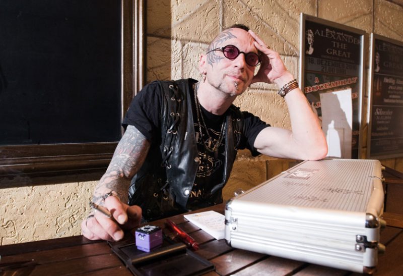 „So einen richtig festen Türsteher haben wir nicht“ sagt Sweaty, Inhaber des Alexander The Great. „Wenn es mal darauf ankommt, helfen alle Angestellten mit.“ Sein Team beschreibt er als große Familie, in der man sich aufeinander verlassen kann. In der Rockerkneipe mit dazugehörigem Club im Gewölbekeller ist zunächst jeder willkommen. Nur bei dem Versuch eigene Getränke oder gar Drogen in den Laden zu schmuggeln hört der Spaß auf. Auch rechtsradikale Äußerungen sind für den 45-jährigen ein No Go. Schlägereien gibt es trotz des bunten Publikums aber so gut wie nie. Vor neun Jahren hat Sweaty das ATG übernommen und auch die Kneipe Good Time ein paar Häuser weiter gehört ihm. „In all der Zeit mussten wir insgesamt nur sechs Mal die Polizei rufen“, verkündet er nicht ohne Stolz. Das führt er vor allem auf den freundlichen Umgang seines Personals mit den Gästen zurück: „Leute, die an der Tür arbeiten, brauchen nicht nur Muskeln, sondern vor allem was im Kopf und viel Geduld. Schließlich müssen sie häufig mit Betrunkenen umgehen und einem Besucher unter Umständen zwanzig Mal erklären, warum er heute Abend nicht mehr reinkommt.“ Dabei sei gegenseitiger Respekt ganz wichtig. Diese Einstellung schätzen die zahlreichen Stammgäste des Alex-ander The Great, unter denen vom Punk bis zum Intellektuellen alles zu finden ist. Sweaty liebt seinen Job. Die Musik und das Klientel im ATG sind genau nach seinem Geschmack und so fühlt er sich auch privat in seinen eigenen Läden am wohlsten: „Deshalb bin ich eigentlich immer hier.“ Nur für seine Freundin ist das manchmal etwas schwierig, aber die sei zum Glück sehr verständnisvoll, schmunzelt er.