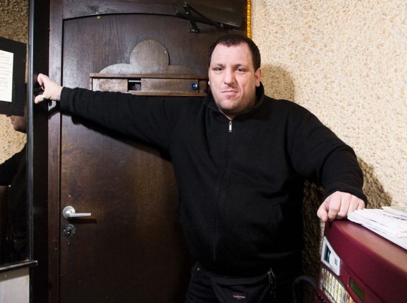 Peter hat ein besonders hartes Arbeitspensum: Werktags ist er Steuerberater, des Nachts stehr er an der Tür der Nachtschicht. Viel auszumachen scheint ihm das nicht, im Gegenteil, er hat sichtlich Spaß an seiner Arbeit. Auch im KUZ und im Red Cat war er schon Türsteher, insgesamt übt er den Beruf seit 16 Jahren aus. Besonders lieb sind ihm Gäste, die offen sind und gern neue Leute kennenlernen. Da die Nachtschicht eher zu den Clubs gehört, die man zu späterer Stunde betritt, sind die Besucher hier nur selten nüchtern, wenn sie an Peter und seinen zwei Kollegen vorbei müssen. „Wenn sie sich benehmen können, ist das aber kein Problem“, grinst er. Nur Jogginghosen sollte man nicht anhaben, wenn man in der Nachtschicht auf Einlass hofft. Die meisten Unstimmigkeiten gibt es nach Peters Aussage mit größeren Männerhorden, die unbedingt noch Frauen kennenlernen möchten und dann meistens etwas über das Ziel hinausschießen. Zur Eskalation kommt es hier aber so gut wie nie, denn der Club ist sehr klein und die Türsteher haben einen guten Überblick über mögliche Unruhestifter. Auch das Team besteht nur aus wenigen Leuten, die sich alle schon lange kennen. Deshalb herrscht unter den Mitarbeitern ein sehr gutes, fast schon familiäres Verhältnis: „Wir trinken gern mal ein Sektchen zusammen“, schmunzelt Peter und fügt mit einem Augenzwinkern hinzu: „Trotzdem wäre ich lieber DJ geworden, die kriegen die hübschen Mädchen und müssen später nicht mehr aufräumen.“ Lange wird er nicht mehr als Türsteher arbeiten, in zwei bis drei Jahren will er den Job an den Nagel hängen. Das habe aber nur etwas mit seinem Alter zu tun, nicht mit der Tätigkeit an sich.