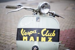 Der Ursprung des Namens „Vespa“ ist ein Rätsel. Die berühmteste Version besagt, dass der Name auf einen Ausruf von Enrico Piaggio zurückgeht, der beim Anblick des Prototyps sagte: „Er sieht aus wie eine Wespe (ital. Vespa)“ und zwar wegen des Motorengeräuschs und der Form der Karosserie, die von oben gesehen an ein Insekt erinnert. Die Ur-Vespa kam 1946 auf den Markt. Nur sieben Jahre später gründete sich der Mainzer Vespa-Club, der in diesem Jahr – am 9. Dezember – sein 70-jähriges Jubiläum feiert. Er kann zurückblicken auf eine bewegende und ereignisreiche Geschichte.