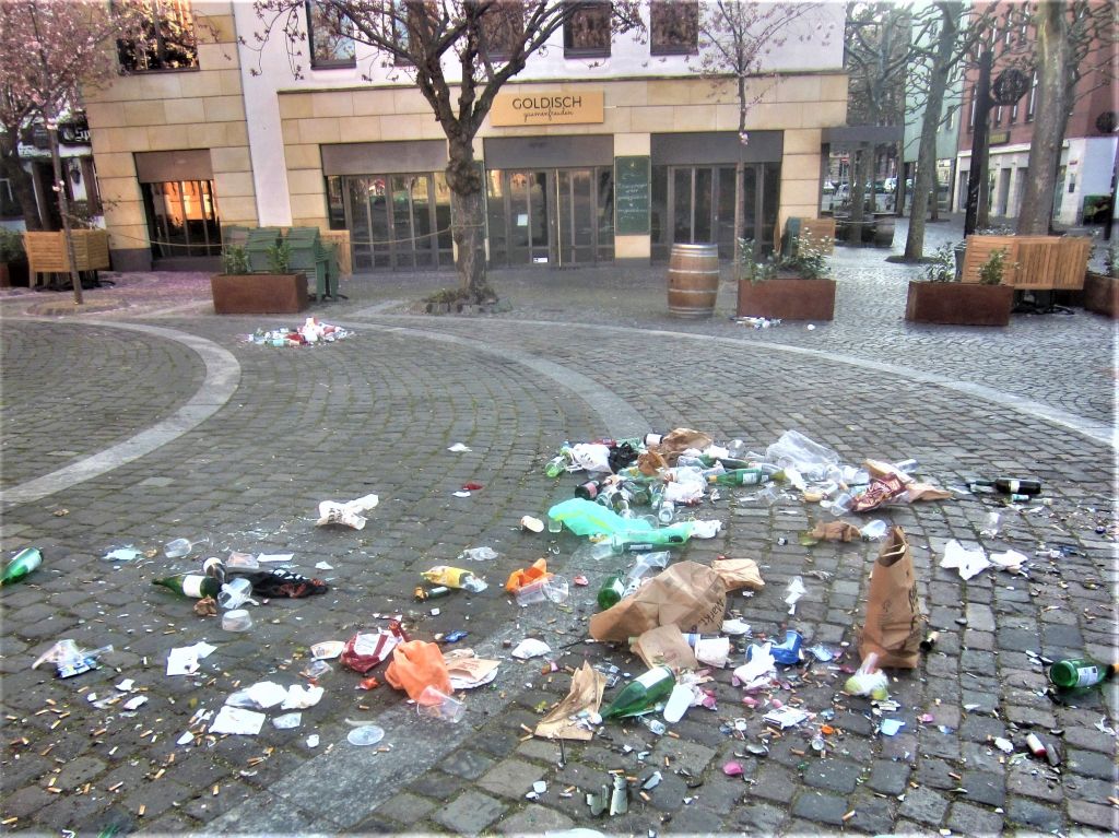 Dies sind oder waren also teils Auswüchse der akuten Corona-Ära, die es den Offiziellen nicht erlaubte, ordentliche Events draußen umzusetzen inklusive Müll-Konzept & Co.. Doch auch außerhalb coronöser Zustände und sonstiger Leiden wird gerne mal der eine oder andere Abfall stehen oder liegen gelassen, was dem einen oder anderen dann ein Dorn bis Balken im Auge ist – zurecht. Grünewald wendete sich gar in einem offenen Brief an die Stadt und Parteienspitze von Mainz: „Sehr geehrter XY, diese Fotos habe ich am Sonntag, dem 27.3.22 um 8.30 Uhr bei meinem Spaziergang zum Rhein geschossen. Am Vorabend sah es in diesem Bereich noch viel abschreckender aus. Eine Schande für Mainz und ebenso für das Ordnungsamt: Trading down in höchster Potenz!!! […] chaotische Zustände. Ein gutes Beispiel dafür, dass in Mainz zunächst einmal solche Mängel abgestellt werden müssen, bevor Kunden und Gäste mit großem finanziellen Aufwand (Innenstadt- Impulse) in den Einkaufsund Erlebnisstandort Mainz gelockt und abgeschreckt werden, diesen so schnell nicht wieder aufzusuchen“. Aber auch sensor-Leser wie Tobias S. berichten uns: „Mainz ist ein Drecksloch! So hart, wie das klingt, und so schade, wie das ist, ist doch so viel Wahrheit dabei. Diese lebenswerte Stadt könnte noch so viel lebenswerter sein, hätte sie nicht dieses Müllproblem! Boppstraße: Laut und dreckig. Dies gilt leider für die komplette Neustadt. Besonders sonntags, wenn es keine Straßenreinigung gibt, ist es auffällig, wie Kaffeebecher, Zeitungen und McDonalds-Verpackungen bei Wind durch die Straßen wehen. Mülleimer quellen über, an vielen Stellen scheint seit Jahren keiner sauber gemacht zu haben. Bahnunterführung in Verlängerung zur Goethestraße: Müll ohne Ende. Bei der Goetheschule gibt es einen Grün- oder Baumstreifen, in dem sich alles vom Hundehaufen, über Kaffeebecher bis hin zu Injektionsspritzen ansammelt. Wo ist bei den Mainzern das Müll-Bewusstsein geblieben?“