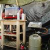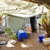 In einem der Schlafzelte steht ein Schreibtisch; darauf eine Lesebrille und ein aufgeschlagenes, leicht zerfleddertes Taschenbuch. Das Küchenzelt überdeckt die Kochstelle samt dem alten, aber sauberen Gasherd. Sogar ein WC-Zelt gibt es, mit einem Toilettenstuhl und einem Kanister mit Wasser zum Händewaschen; daneben steht ein Spender mit rosafarbener Seife. Und zwischen allem: drei lebhafte Hunde. Keine Frage, diese kleine Zeltstadt ist ein Zuhause – und zwar das von zwei wohnungslosen Menschen, Pascal Schmit (45) und Ma-ah-tee (60). Seit Jahren haben sie ihre „Platte“ auf dem brachliegenden Grundstück am Fort Hauptstein, nur drei Minuten Fußweg von der Beratungsstelle und dem Tagesaufenthalt der Evangelischen Wohnungslosenhilfe entfernt.